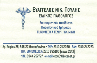 Ειδικός ΠαθολόγοςΠιστοποιημένος με ΕΟΠΥΥΕπιστημονικός Υπεύθυνος Κλινικής Euromedica
